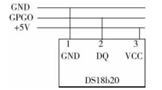 温度传感器采用美国Dallas公司生产的单总线数字式温度传感器-DS18B20,它结构简单,不需要外接电路,可用一根I/O数据线既供电又传输数数据,将温度信号直接转换为数字信号送给微处理器,电路简单,成本低,操作方便。DS18B20与ARM处理器接口电路如图2所示。
