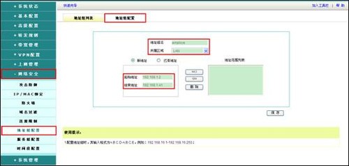 1)在艾泰网关UTT5830G的WebUI->网络安全->地址组配置页面中,配置办公区域电脑地址组。