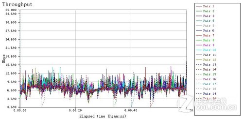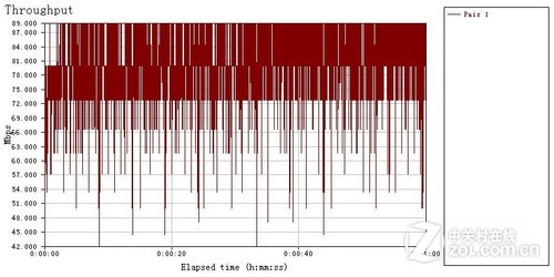 通过在ZOL办公区的实际测试,华硕“玩酷”路由器展现了其全面的无线性能。在距离A点35m处的信号强度可达到88%,这个成绩在300M无线产品中处于绝对领先的水平;而在隔断墙和承重墙的阻隔下,它也有72%和57%的给力表现,展现了非常强劲的无线信号穿墙能力,整体表现令人很满意。第6页:单线程测试RT-N56U精彩给力瞬间