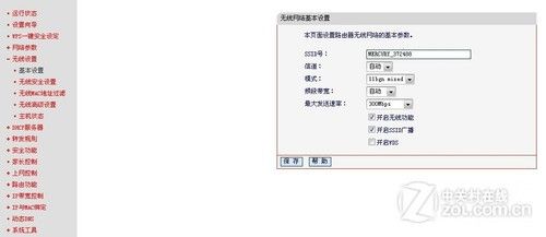 在无线设置选项中,我们可以对它进行常规的基本设置,包括开关无线功能、选择无线模式等;在无线安全设置中,我们可以添加无线密码,无线加密方式等;在无线设置中还包括无线MAC地址过滤、无线高级设置和主机状态选项。在无线高级设置中我们可以选择传输功率的模式以及Beacon时槽等高级配置。