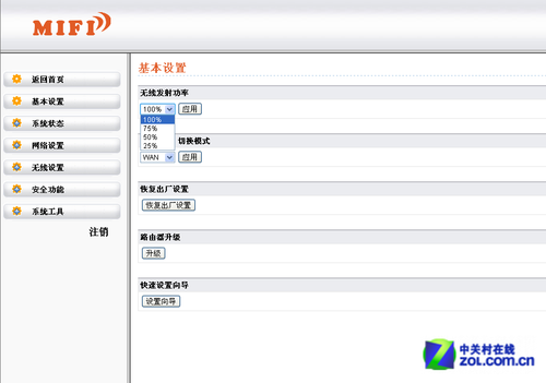 下面通过两台笔记本(A和B,均搭配11n无线网卡)连入ITONSR830(X3)的无线网络“zol-ITON-MiFi”,然后实际测试3G网络分享效果。 进入“高级设置”界面,首先看到“基本设置”,可调节“无线发射功率”、“LAN/WAN切换模式”和“快速设置向导”等实用选项。请看如下