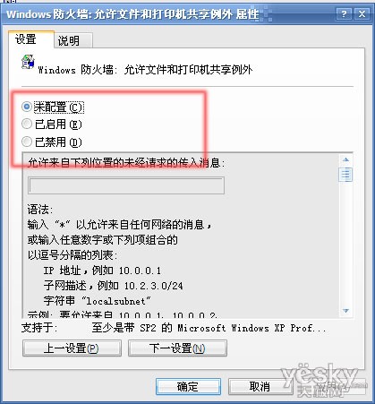 当共享打印机连接到安装有WindowsXP系统的计算机中时,我们可以利用Windows系统自带的防火墙来共享打印机的访问安全,可是有一些水平稍微高一些的用户,只要打开防火墙的设置窗口,将其中的“文件和打印机共享”功能排除在防火墙之外的,他们往往就能轻松穿请看如下