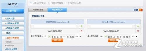 我们尝试打开搜狐、新浪、ZOL首页、大众点评、新浪新闻、搜狐新闻、世纪佳缘交友网、17173、京东、淘宝、和讯、招行、拉手网、美团和ZOL手机论坛等15个网站,但NR285G的网址管理是相当准确的,我们所尝试打开的网站均无法正常打开,且所有的尝试上网记录均保留在了“行为管理日志”中。(PS:未正常打开的页面将自动跳转至磊科官网)