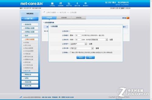 为了更进一步满足企业人性化管理需求,磊科NR285G特别提供了电子公告可视化编辑设置,企业管理员不仅可以设置公告模式、时间、用户等基本信息,还能编辑详细的公告内容,对于企业管理而言,这常实用且必须的功能。