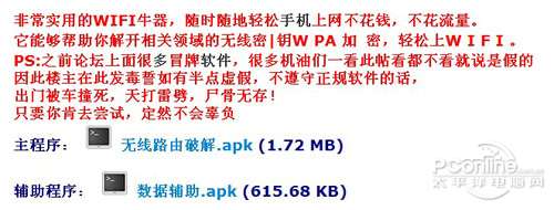 路由破解这款软件的原理目前尚不清楚,但如果只是依靠单纯的“穷举法”,那么,即便是目前主频最高的Tegra2四核处理器,也未必能在2小时内得出结果。希望尝鲜的网友可自行百度搜索这两个apk安装文件(鉴于相关法规,笔者不便放出下载链接)