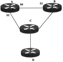 对于A,B来说,它们互为相邻的路由器,其中A路由器的S0与B路由器的S1为相邻路由器的相邻端口,但A路由器的S1口与B路的器的S1口并不是相邻端口,A与D不是相邻路由器。