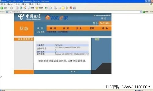 电信说是一个无线猫,仔细研究后发现这个所谓的无线猫其实是一个DLINK的无线由器,DIN我的e家接入方式下的无线由器配置dlink路由器密码KDI524。只不过是电信把由功能封掉了,变成了桥接。这样每次上网都得用电脑拨号,而且家里有两个电脑的话是没有办法共享请看如下