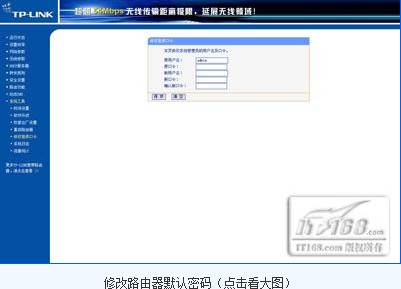 正如的文章所提到的,由相同的厂商生产的无线宽带路由器或无线设备通常具有相同的密码。如果不修改它,所带来的安全是巨大的。因此,可能只需要花费你30秒的时间就能大大提高你的无线家庭网络免受,何乐而不为?通过浏览器(或厂家工具)来访问无线宽带路由器的管理界面。进入设置页面,找到修改密码的地方,点击修改密码选项。